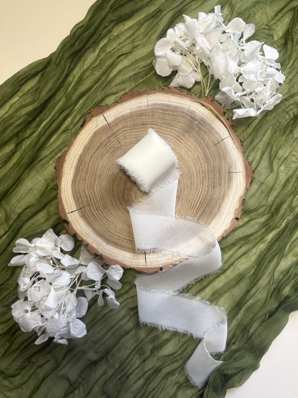 Panglica de matase cu margini nefinisate, un accesoriu ce oferă articolelor creative un plus de eleganță și rafinament. Poate fi folosită cu ușurință în decorarea diverselor articole de papetărie (invitații, felicitări), articole florale (buchete, lumânări), cadouri, etc.