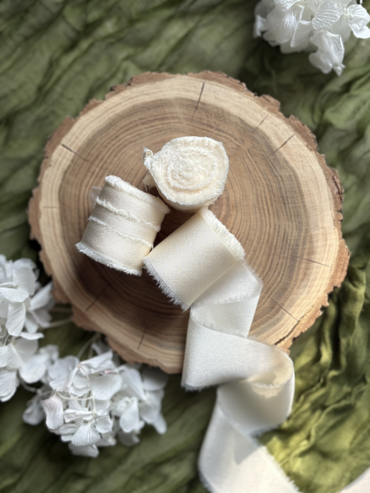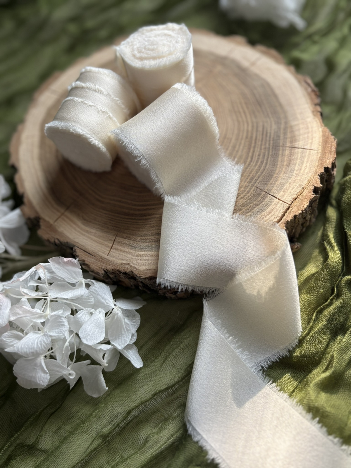 Panglica de matase satinata, cu margini nefinisate, un accesoriu ce oferă articolelor creative un plus de eleganță și rafinament. Poate fi folosită cu ușurință în decorarea diverselor articole de papetărie (invitații, felicitări), articole florale (buchete, lumânări), cadouri, etc.