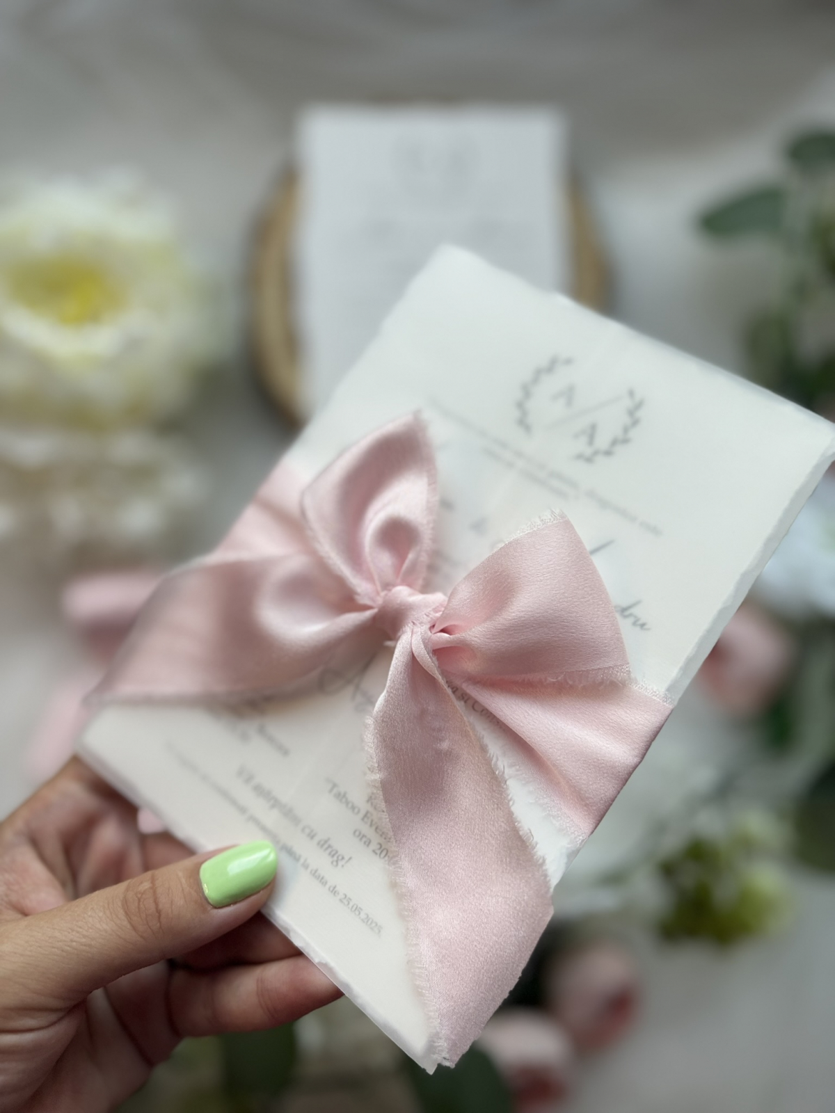 Panglica de matase satinata, cu margini nefinisate, un accesoriu ce oferă articolelor creative un plus de eleganță și rafinament. Poate fi folosită cu ușurință în decorarea diverselor articole de papetărie (invitații, felicitări), articole florale (buchete, lumânări), cadouri, etc.