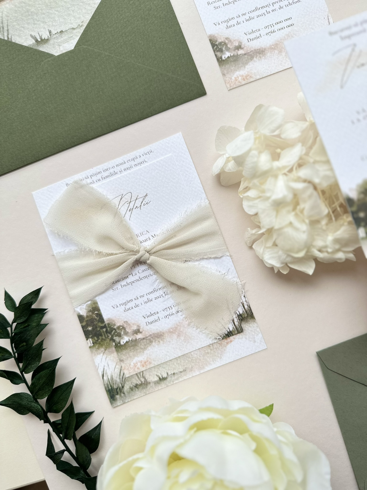 Panglica de matase cu margini nefinisate, un accesoriu ce oferă articolelor creative un plus de eleganță și rafinament. Poate fi folosită cu ușurință în decorarea diverselor articole de papetărie (invitații, felicitări), articole florale (buchete, lumânări), cadouri, etc.