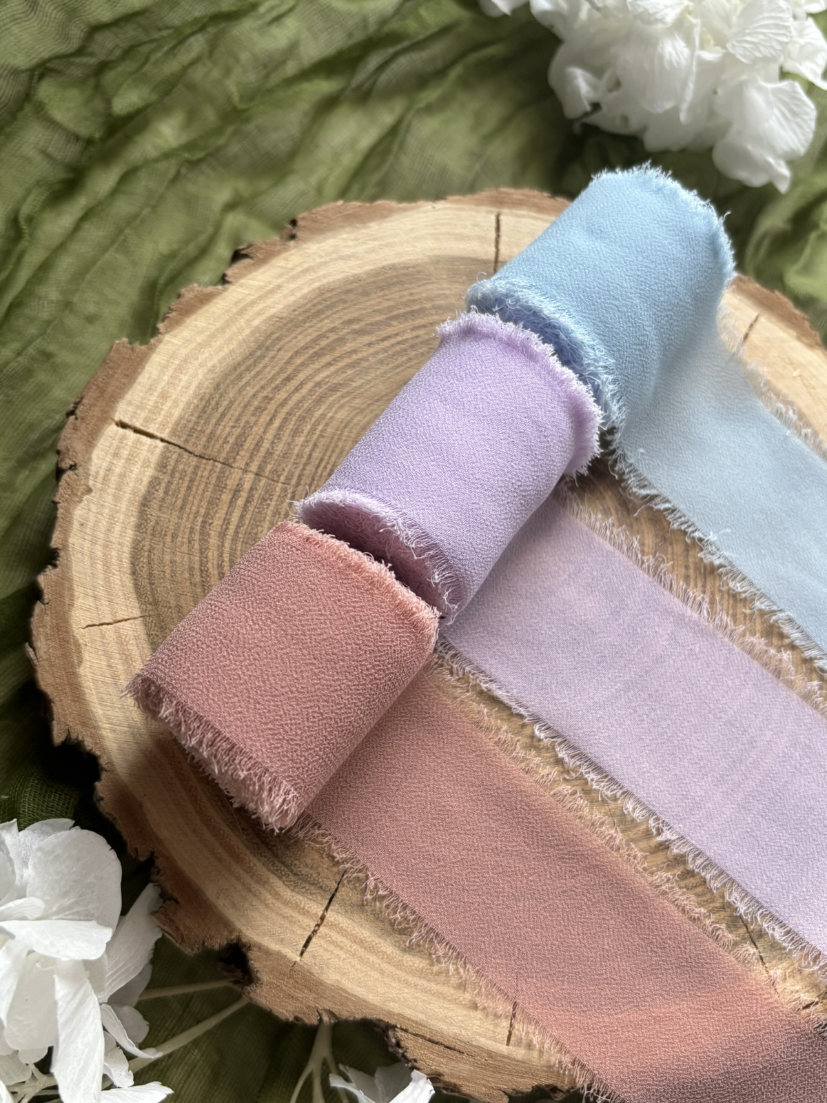Panglica de matase cu margini nefinisate, un accesoriu ce oferă articolelor creative un plus de eleganță și rafinament. Poate fi folosită cu ușurință în decorarea diverselor articole de papetărie (invitații, felicitări), articole florale (buchete, lumânări), cadouri, etc.