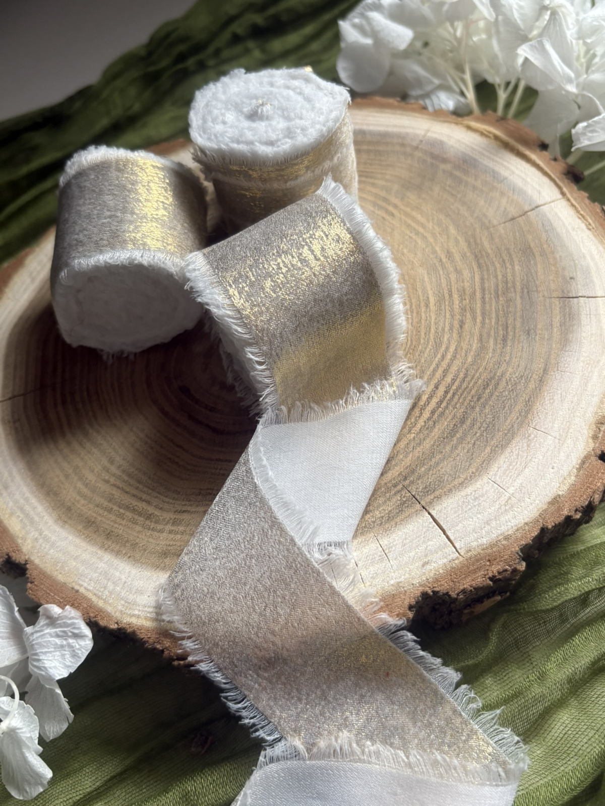 Panglica cu reflexii fine, cu margini nefinisate, un accesoriu ce oferă articolelor creative un plus de eleganță și rafinament. Poate fi folosită cu ușurință în decorarea diverselor articole de papetărie (invitații, felicitări), articole florale (buchete, lumânări), cadouri, etc. Este realizată dintr-un material de mare rezistență, asigurând durabilitate și o senzație premium.