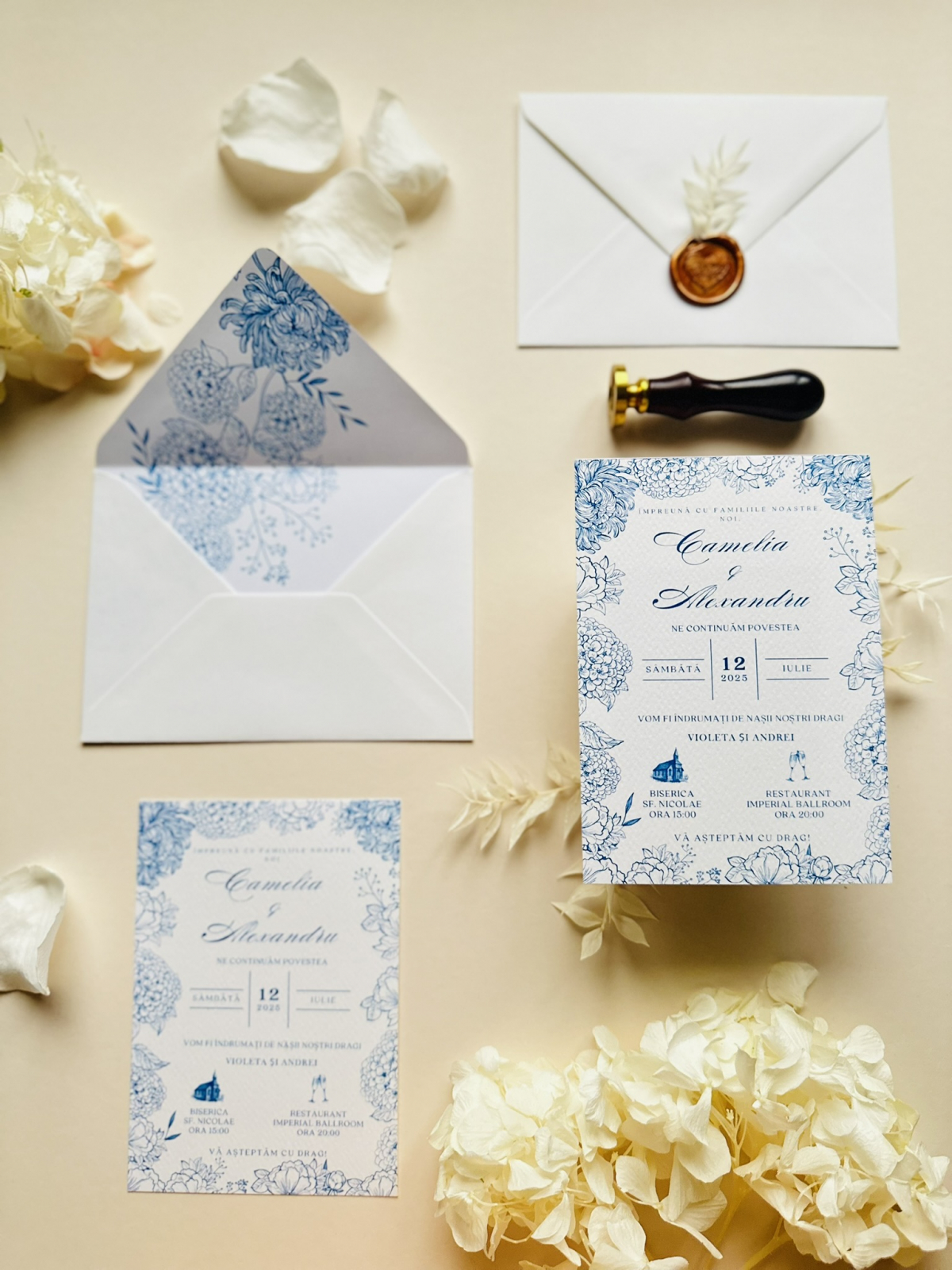 Pentru un plus de eleganță și rafinament, se poate combina cu ușurință cu un sigiliu de ceară, fie că este unul simplu, cu plante uscate sau cu foiță aurie, cu siguranță vei face o alegere inspirată. De asemenea, panglica de mătase, atasată în diverse moduri plicului, sau combinată cu un sigiliu de ceară, poate crea un accesoriu de poveste pentru evenimentul tău.